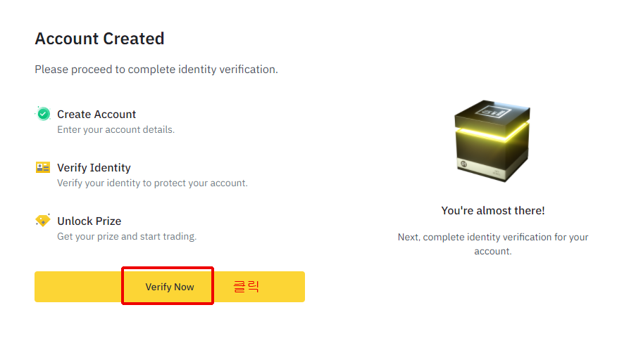 7. 기본적인 인증을 통해 계정은 만들어 졌습니다! 하지만, 이 상태로는 거래가 안되기 때문에 추가 인증을해야합니다.