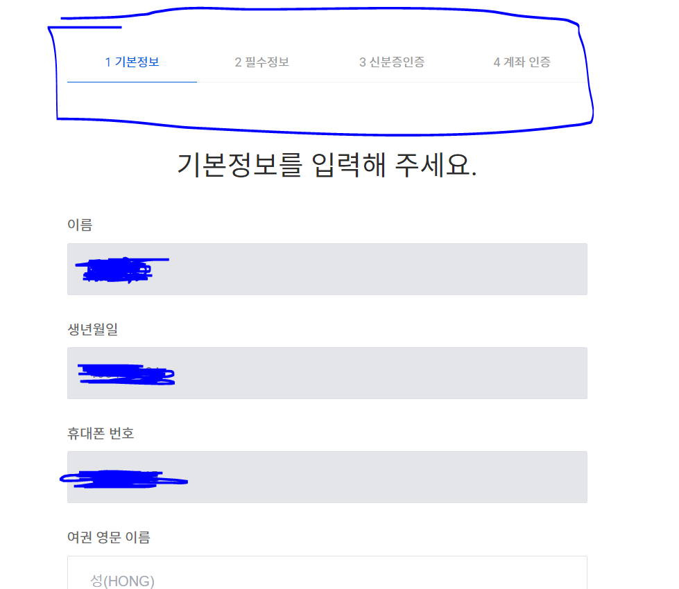 9. 기본정보를 입력합니다. (영문 이름은 여권에서 사용되는 본인 영문 이름 넣으시면 됩니다.)
