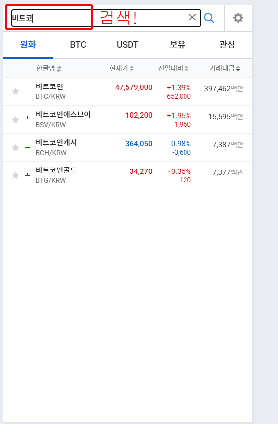 4. 이렇게 검색하면 비슷한 이름을 가진 코인들도 쉽게 확인할 수 있습니다. (쉽죠?)