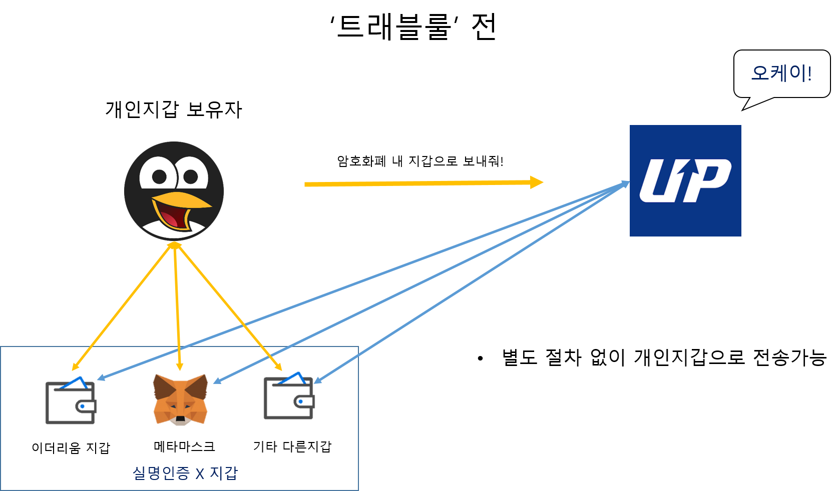 '트래블룰' 이전에는 실명인증을 받지 않은 개인 지갑들로의 암호화폐 이동이 자유로웠습니다.