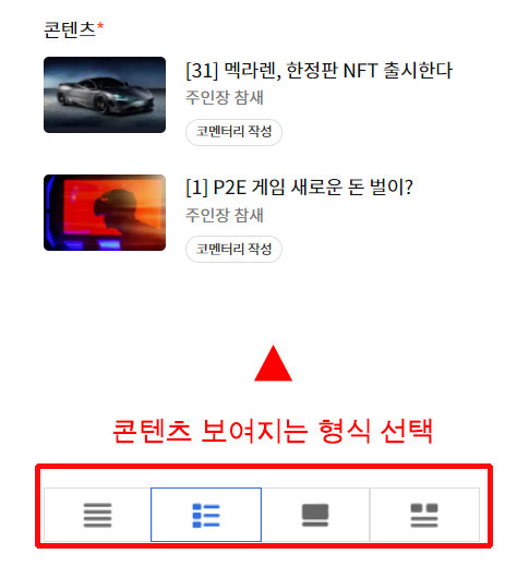 - 그 후 왼쪽 아래에 콘텐츠 형식을 선택하면 준비완료!