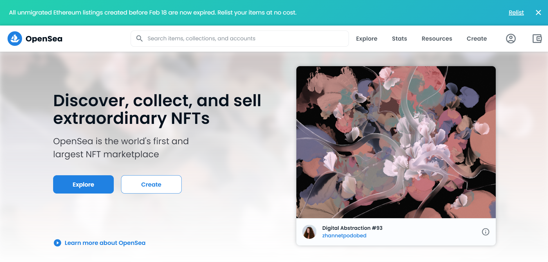 오늘은 세계 최대 NFT 거래소인 OpenSea(오픈 씨)를 한 번 알아보겠습니다.