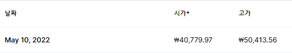 LUNA의 가격은 시가 40,779원 고가는 50,413원