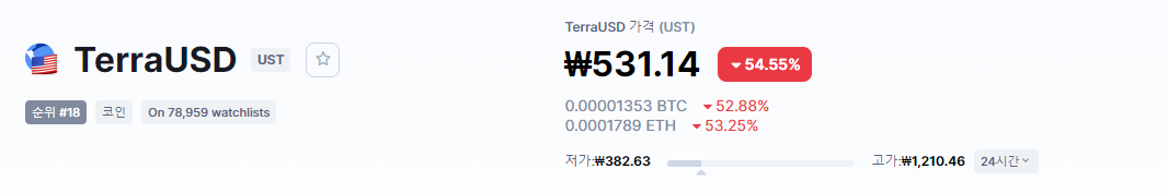 더 이상 스테이블 코인이라 부를 수 없을 정도로 무너져버렸습니다.