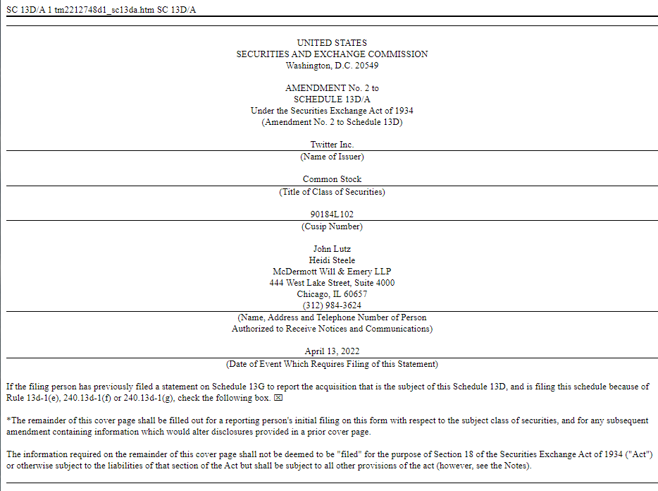 1. 일론 머스크, 트위터 주식 100% 1주당 54.2$에 인수 제안