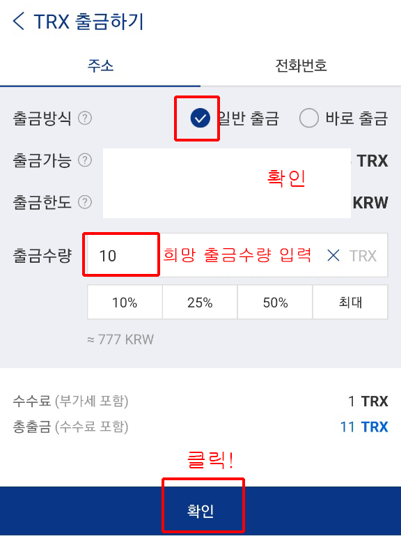 4. 입금받을 지갑 주소를 '입력'해줍니다.