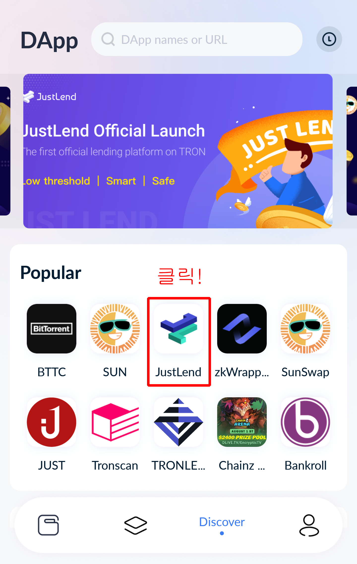 - DaPP - Popular - 'JustLend'를 클릭해줍니다. (이미지 참고)