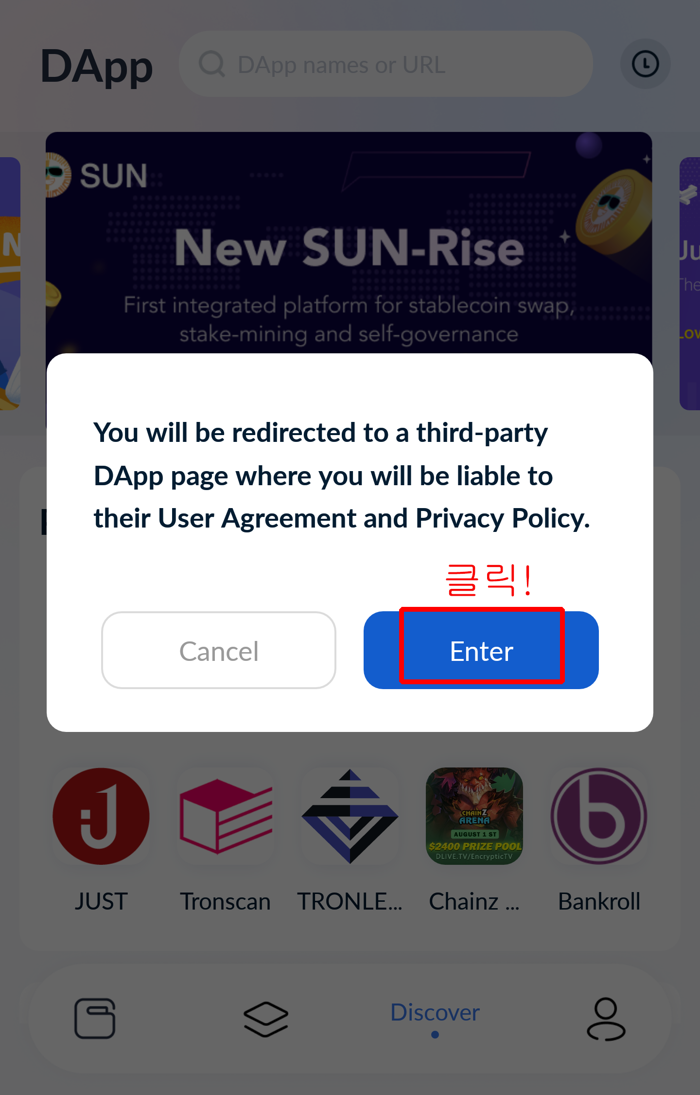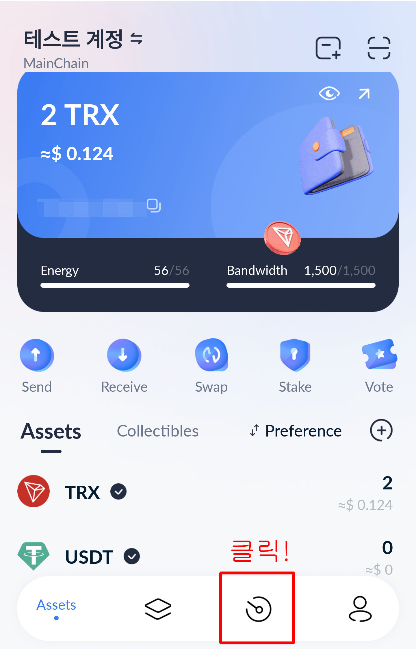1. 'TronLink Pro' (모바일) 에 접속 후 '동그라미 모양' 클릭!