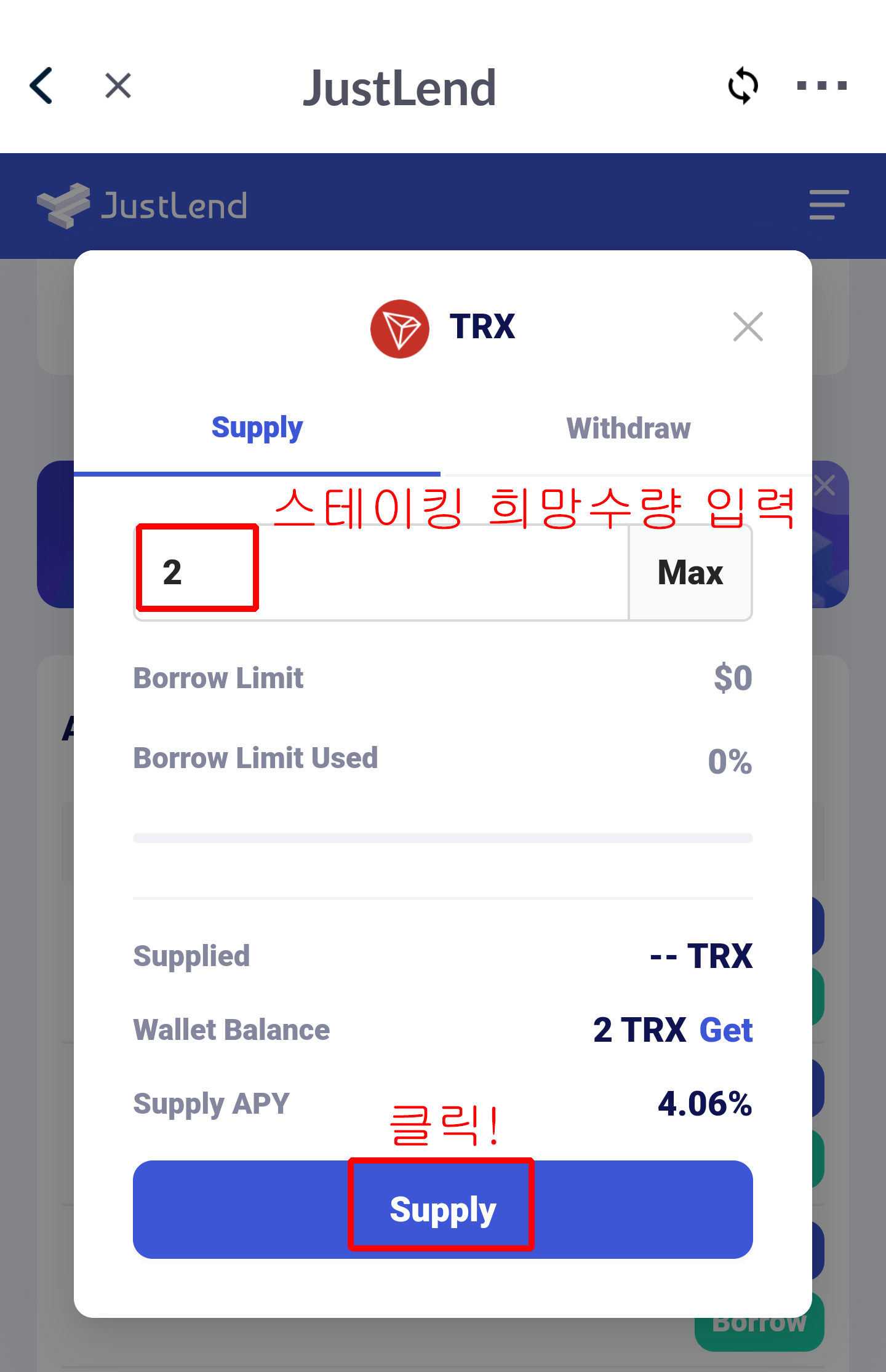 '저스트렌드(Justlend)'를 활용한 스테이킹 방법