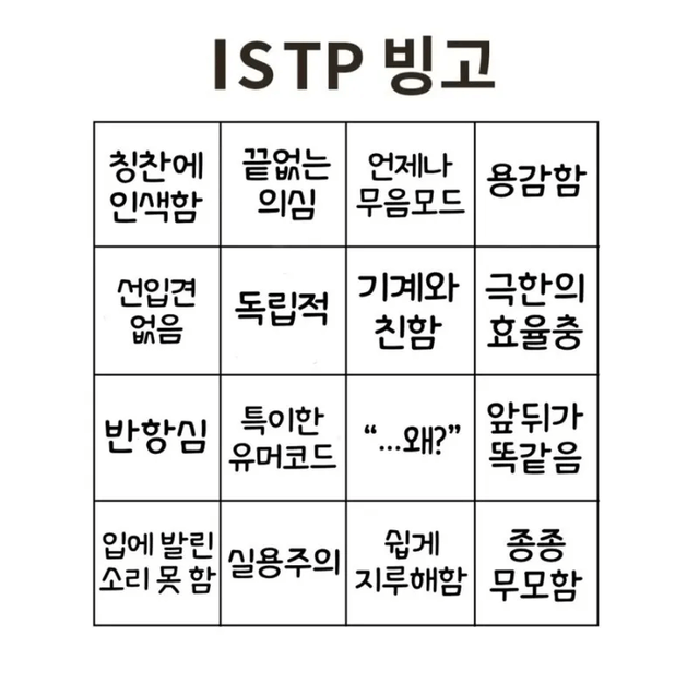 여기까지 ISTP의 특징에 대해 알아보았습니다.