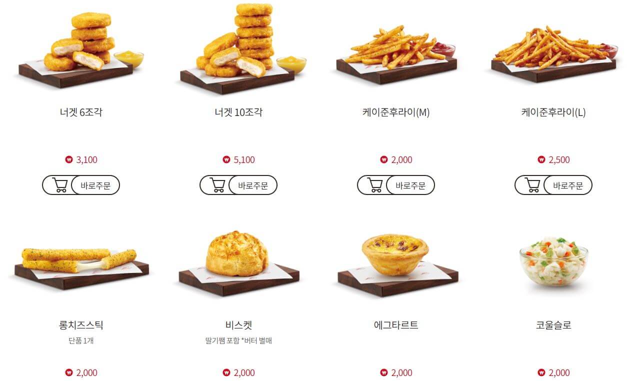 | 6 | 텐더 2조각 | 2,900원 |