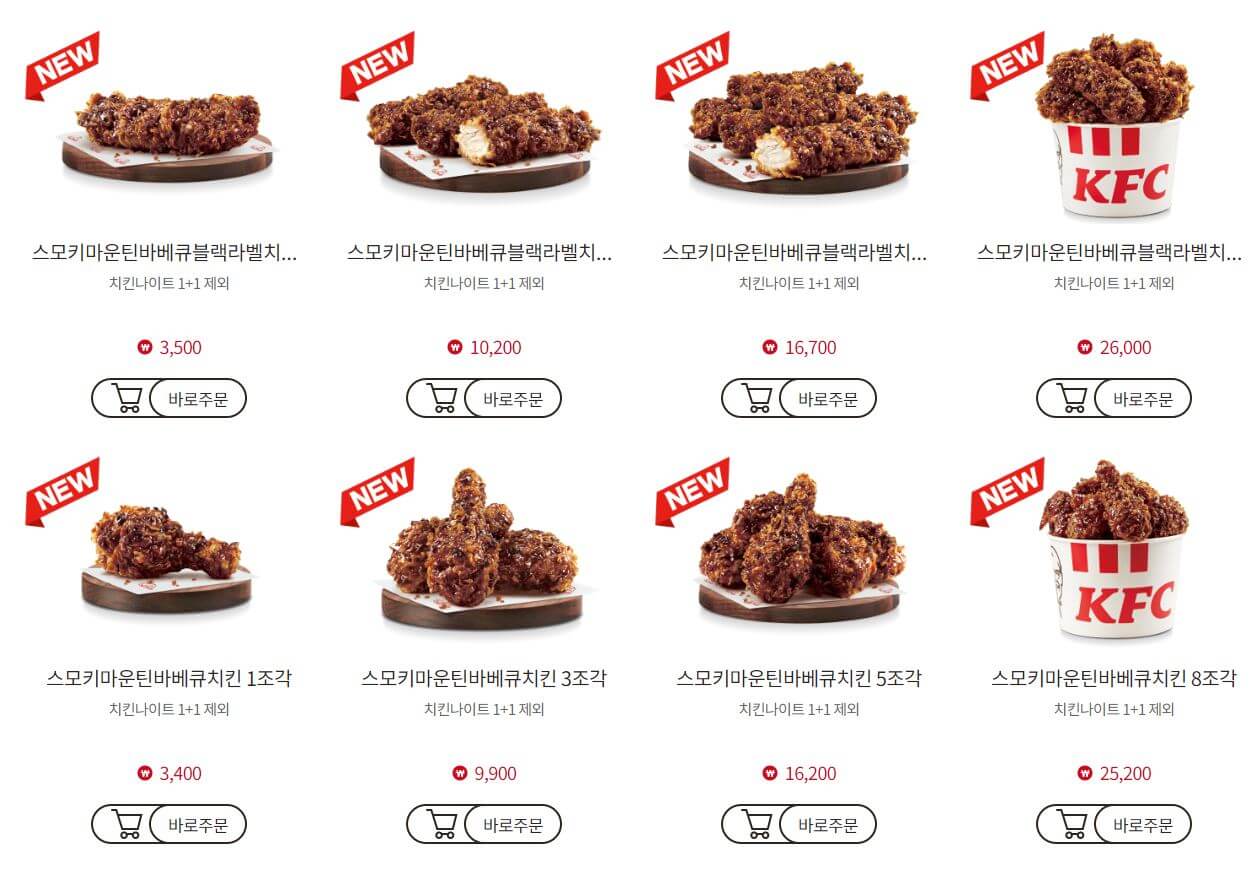 | 3 | 스모키마운틴바베큐블랙라벨치킨 5조각 | 16,700원 | |